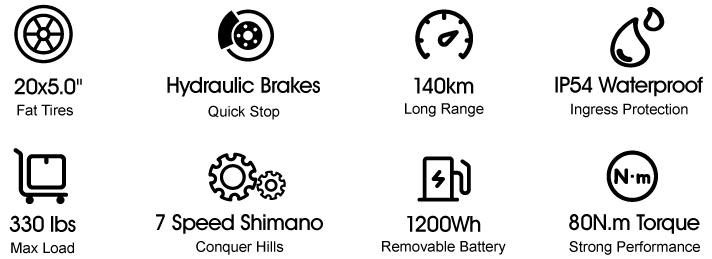 The hydraulic front suspension fork, with the 20"x5.0" puncture protection tires, effectively cushions the shocks from diverse terrains. Riding this bike brings you much comfort and easiness