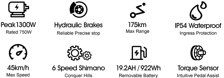 The HQ20 is equipped with a 19.2AH removable lithium battery, 922WH, with a maximum range of 175km.