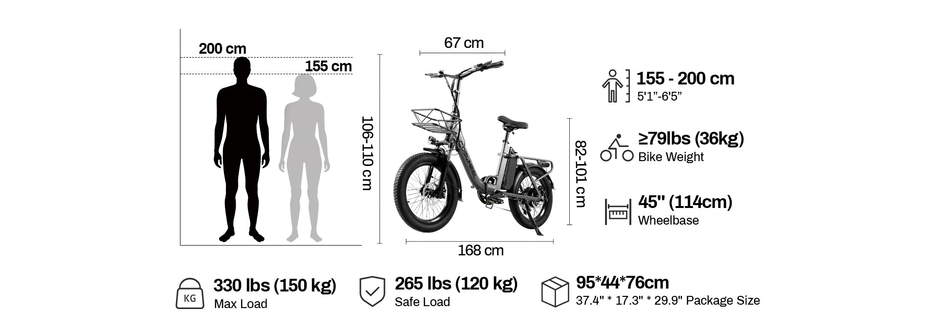 - Suitable Height: 155cm-200cm(5'1" - 6'5")